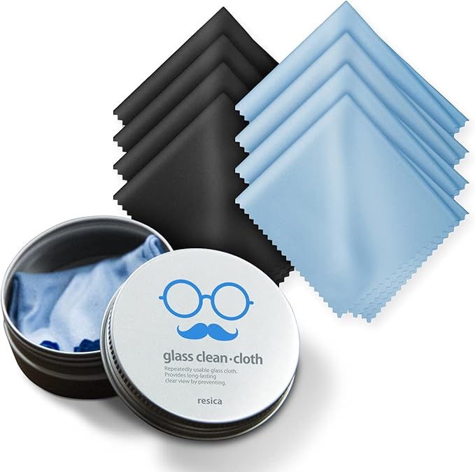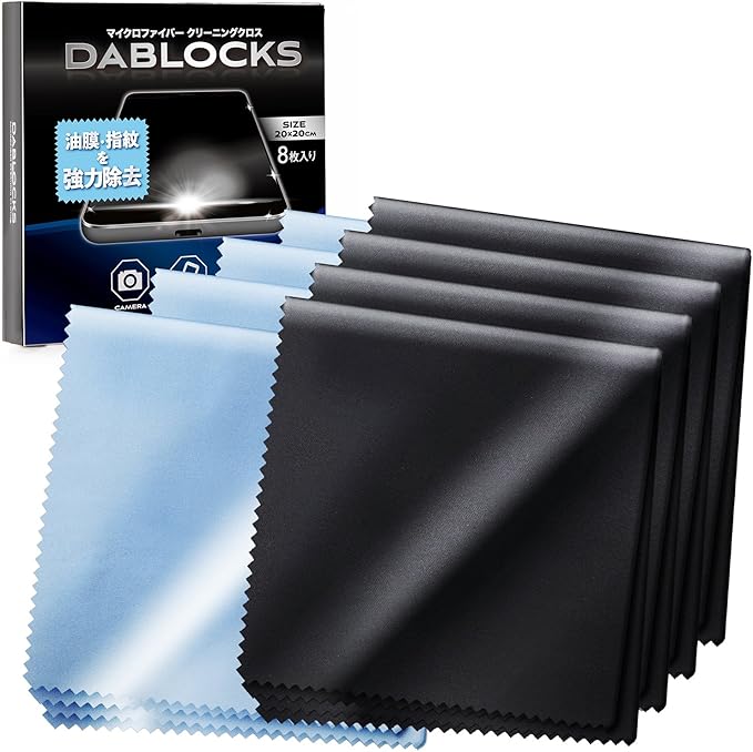 DABLOCKS クリーニングクロス メガネ拭き 20×20cmの8枚セット(黒4枚、水色4枚)