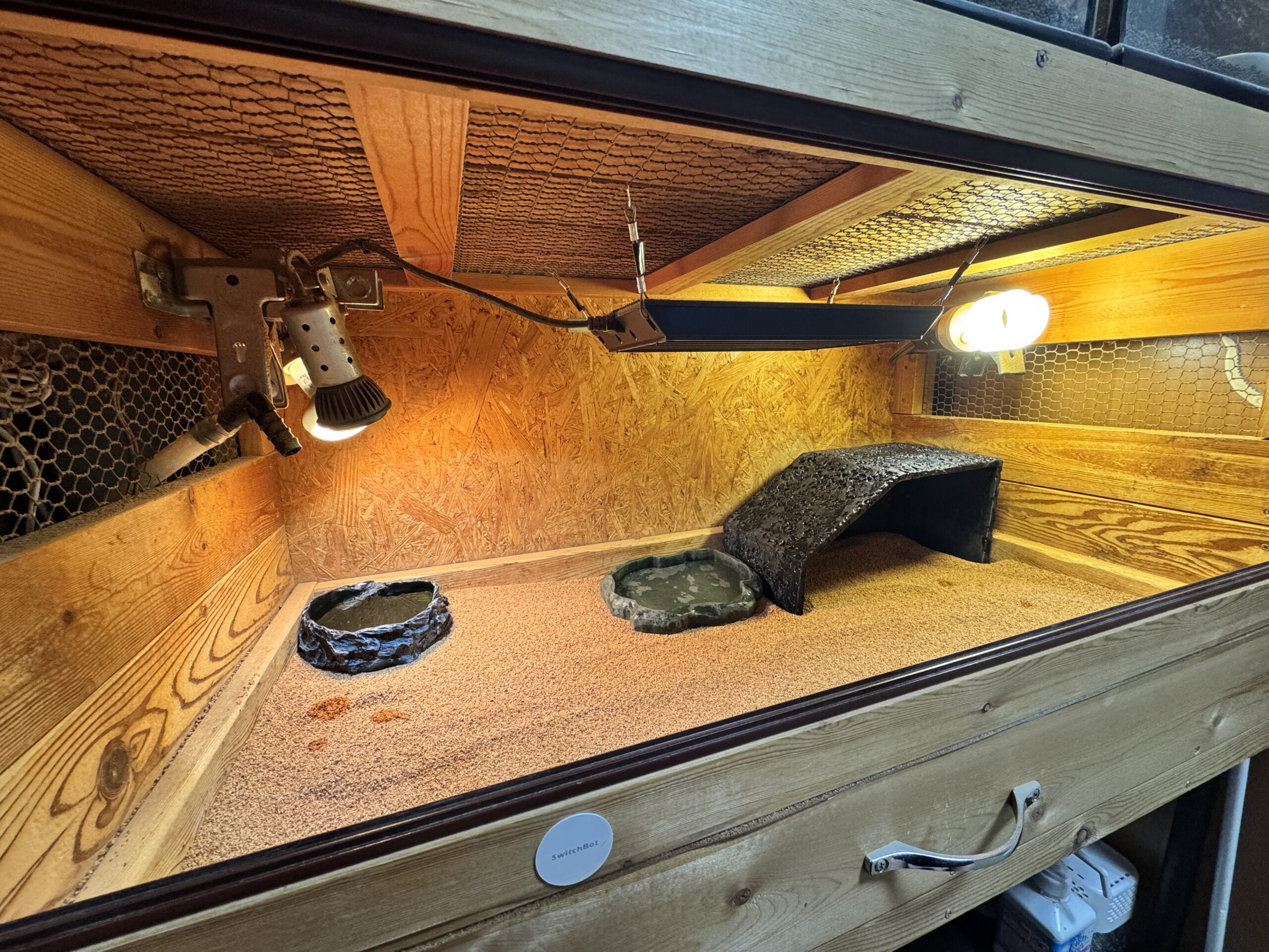カメは懐かない、慣れてるだけだとよく言いますが、飼育していると「絶対これ懐いてるだろ!」となります!ご飯食べてる途中でも僕が帰ってくるとダッシュで近づいて来ますからね!とみ。のリクガメケージは、IOT化などいろいろと改造を施しているので、近いうちにメンテナンス方法と併せて詳しく解説します!