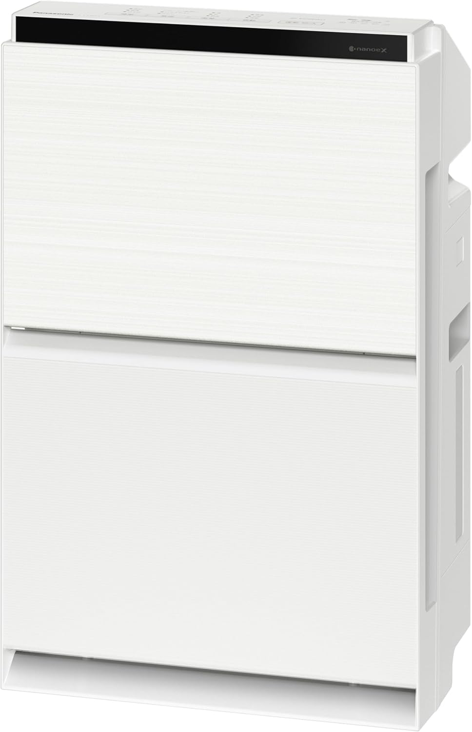 パナソニックといえばナノイーX!もちろんこの空気清浄機にも搭載されていて、花粉やアレル物質・臭いなどに効果的です。また吸引性能も高く、一般的な空気清浄機が背面からの吸引なのに対し、こちらは前面からの吸気かつ、排気も上から3方向に排気出来るので壁際に設置しても効果的に空気を循環させることができ、結果的に清浄能力が高くなっています。お手入れも前面のパネルをガバっと外せば全て出来るので、壁際に設置してもわざわざ移動させる必要はありません!